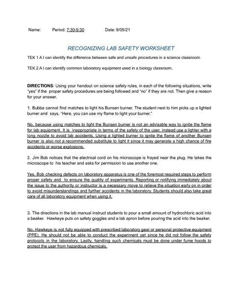 Download Recognizing Laboratory Safety Answers Doc
